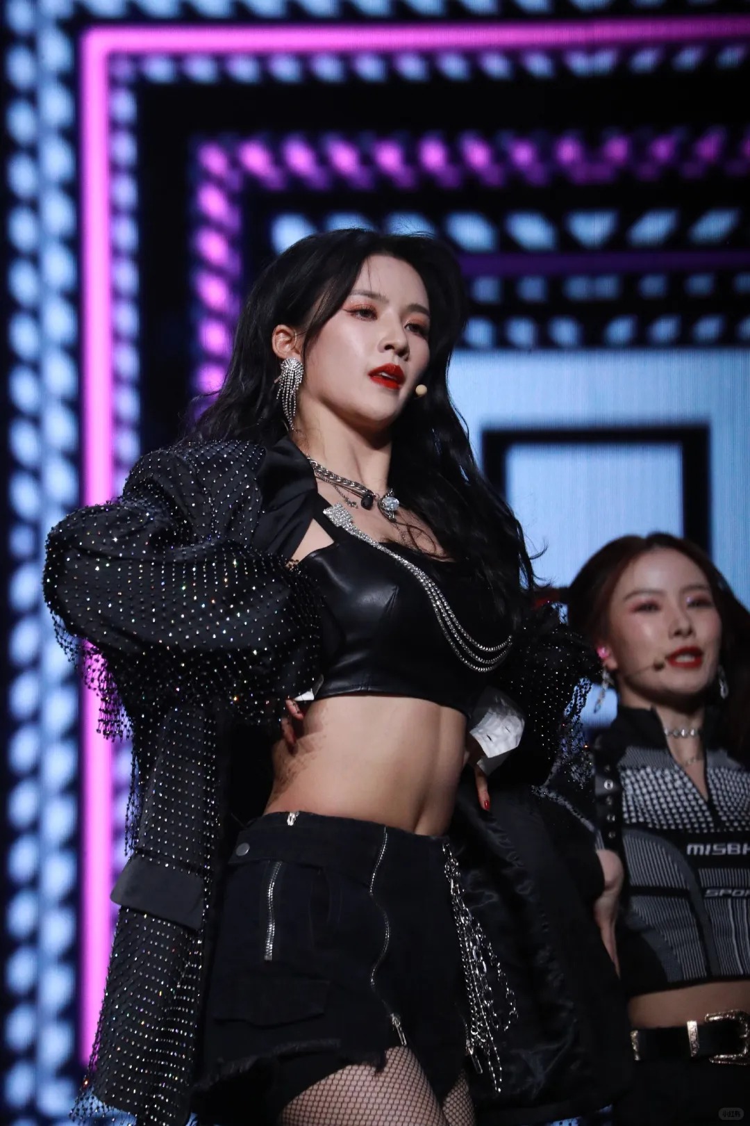 而她火辣的身材在热舞中更是被全方位地展现出来。她的玉腿修长笔直,每一次跳跃、踢腿的动作,都像是在展示一件完美的艺术品。腿部肌肉的线条流畅而紧实,这是长期训练的成果。她的上半身也毫不逊色,紧致的腹部没有一丝赘肉,平坦得如同镜面。她的胸部在热舞时随着节奏轻轻晃动,这种自然的律动增加了她的性感韵味。