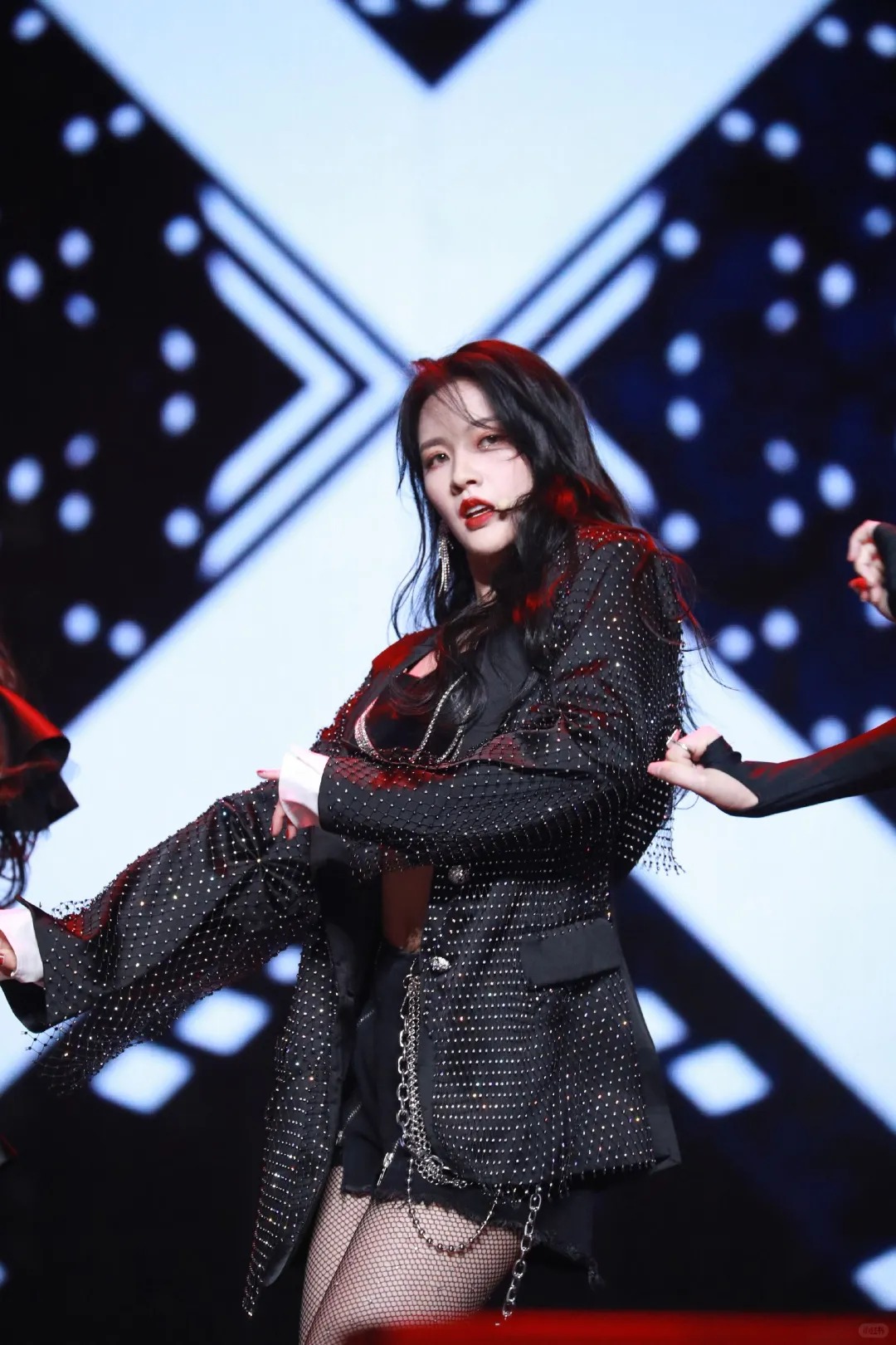 她的舞蹈动作充满了力量与节奏感。每一个舞步都像是精心编排的故事章节,从开场的惊艳亮相到中间的高潮迭起,再到最后的完美收场。她的眼神始终充满着热情与专注,像是在与观众进行一场无声的对话。她的嘴唇微微张开,像是在喘息,又像是在诉说着舞蹈中的情感。在舞台灯光的映照下,她整个人就像是从梦幻世界走来的精灵,散发着令人难以抗拒的魅力。
